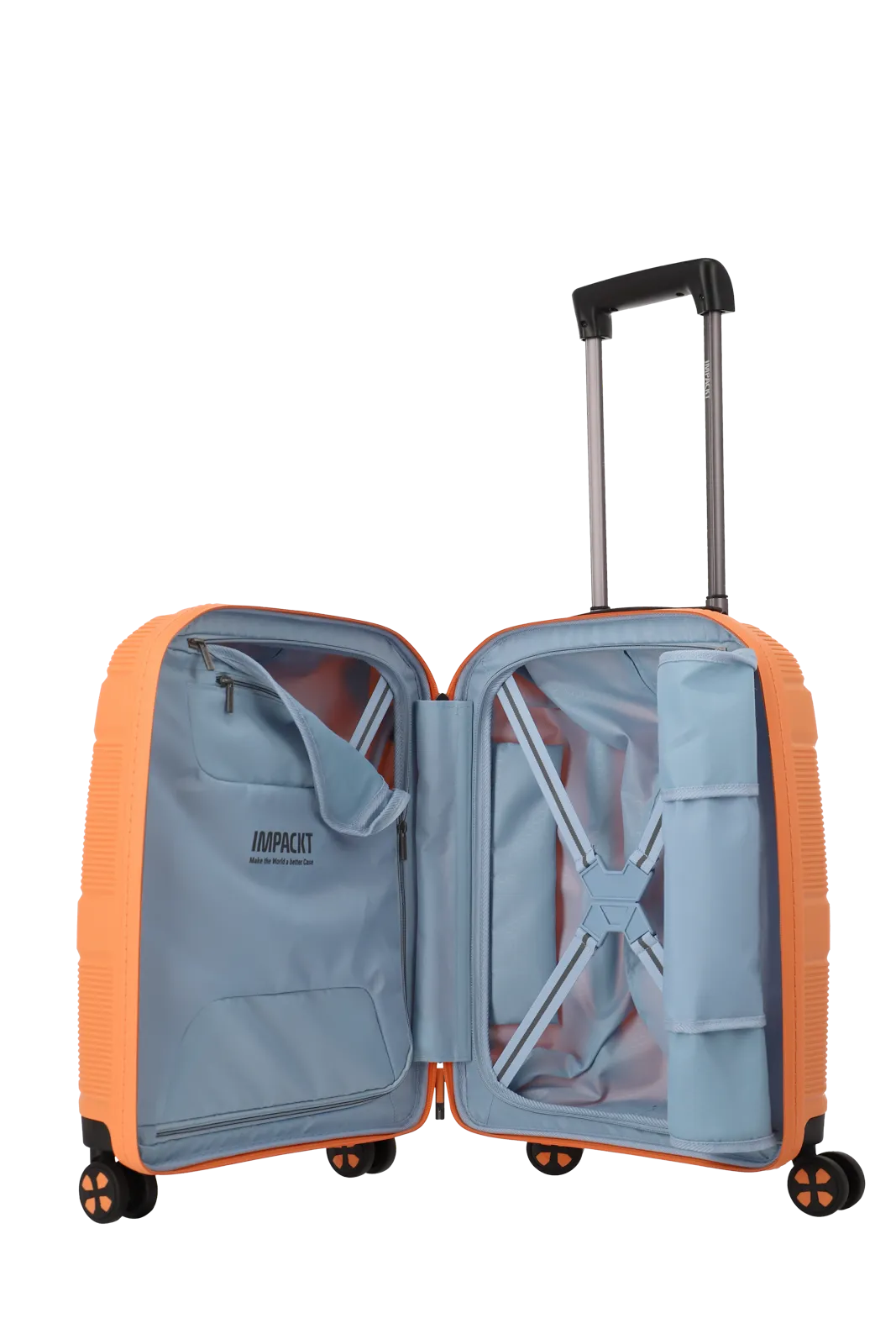 Naš najveći. Dovoljno prostora za duga putovanja. Nelomljiv pokrov izrađen od reciklirane plastike štiti Vaše stvari prilikom putovanja. Vodootporni patentni zatvarač i TSA Lock® čuvaju vaše stvari suhim i zaštićenim od krađe. Također, IMPACKT brine i za okoliš: pokrov je izrađen od 46% reciklirane plastike, podstava od 100%.